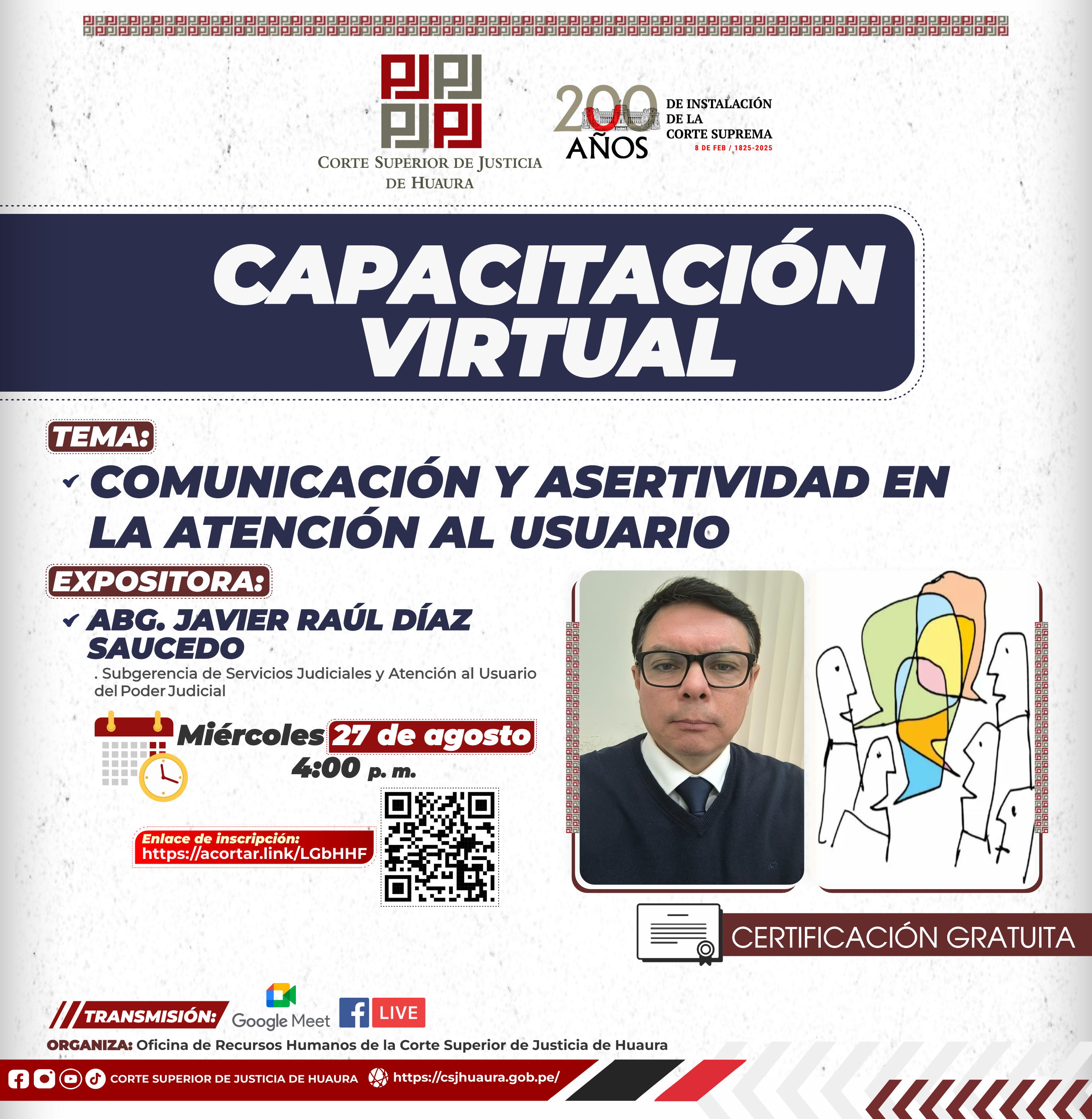Evento Académico Virtual: Dirigido a Magistrados, servidores jurisdiccionales, administrativos de la Corte Superior de Justicia de Huaura, abogados y público en general.