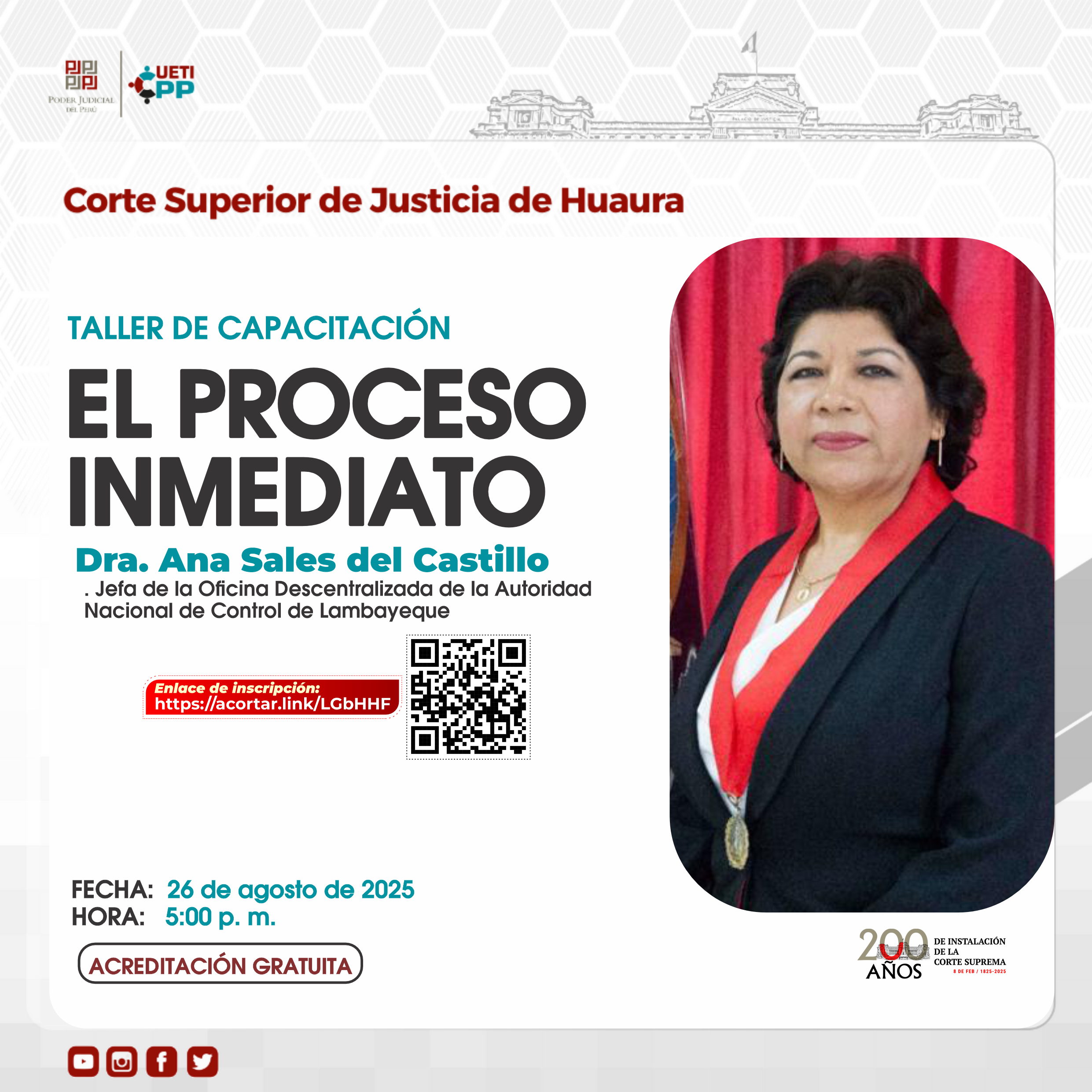 Evento Académico Virtual: Dirigido a Magistrados, servidores jurisdiccionales, administrativos de la Corte Superior de Justicia de Huaura, abogados y público en general.